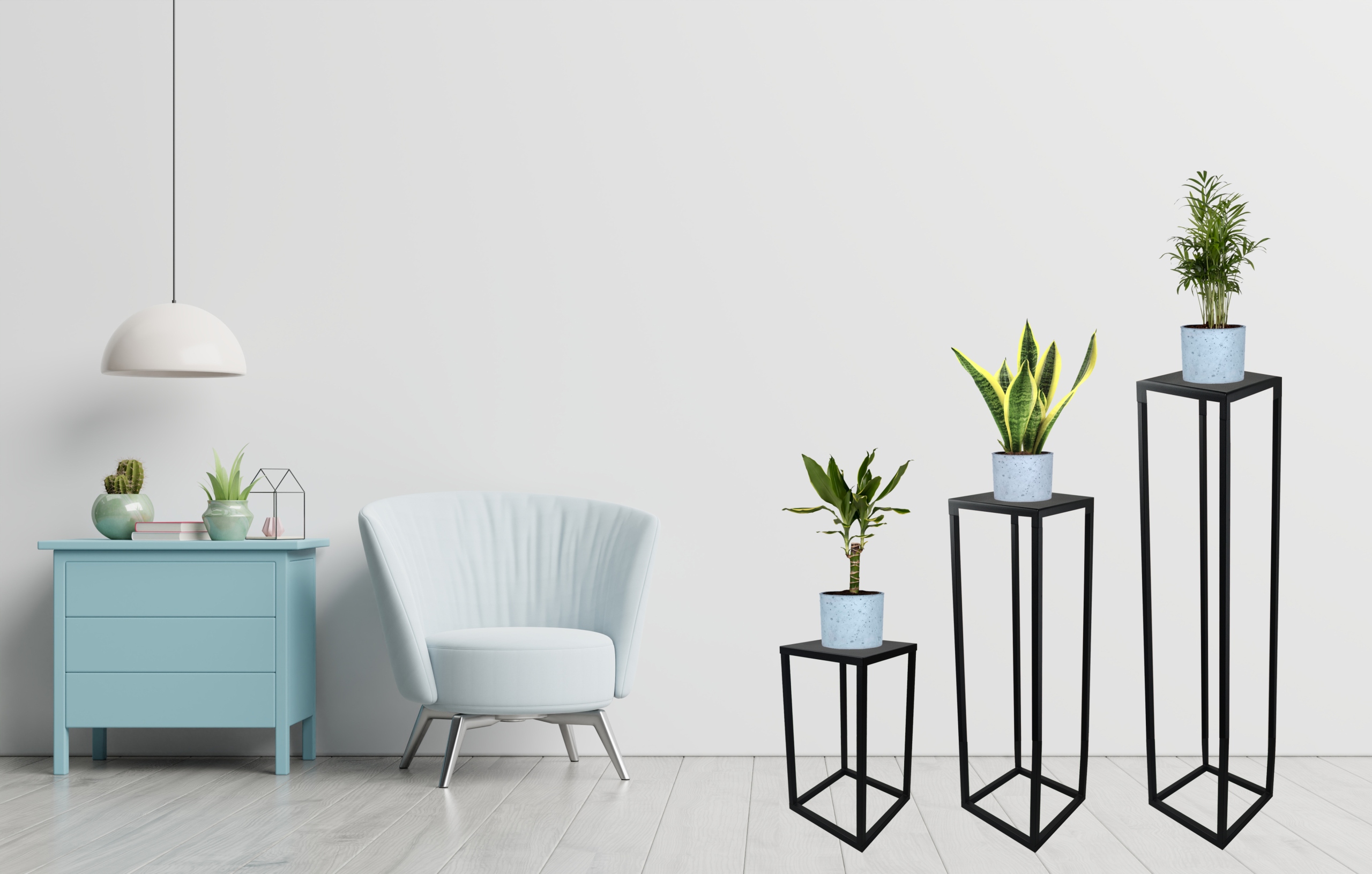 Prezentujemy nowoczesny, metalowy stojak w kolorze czarnym o wysokości 40 cm.