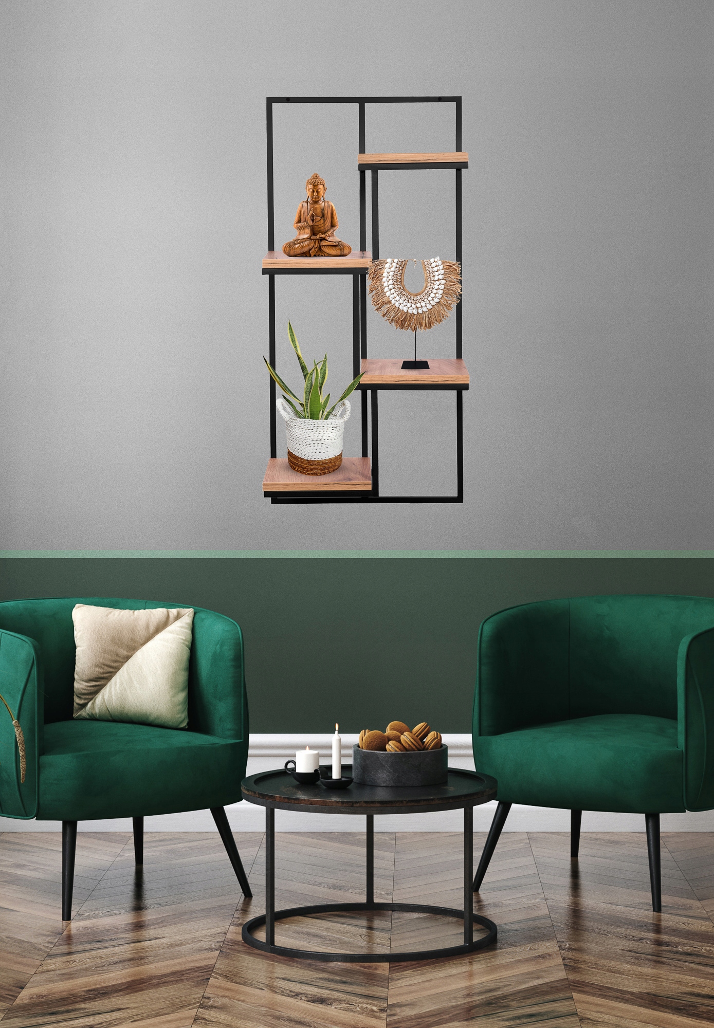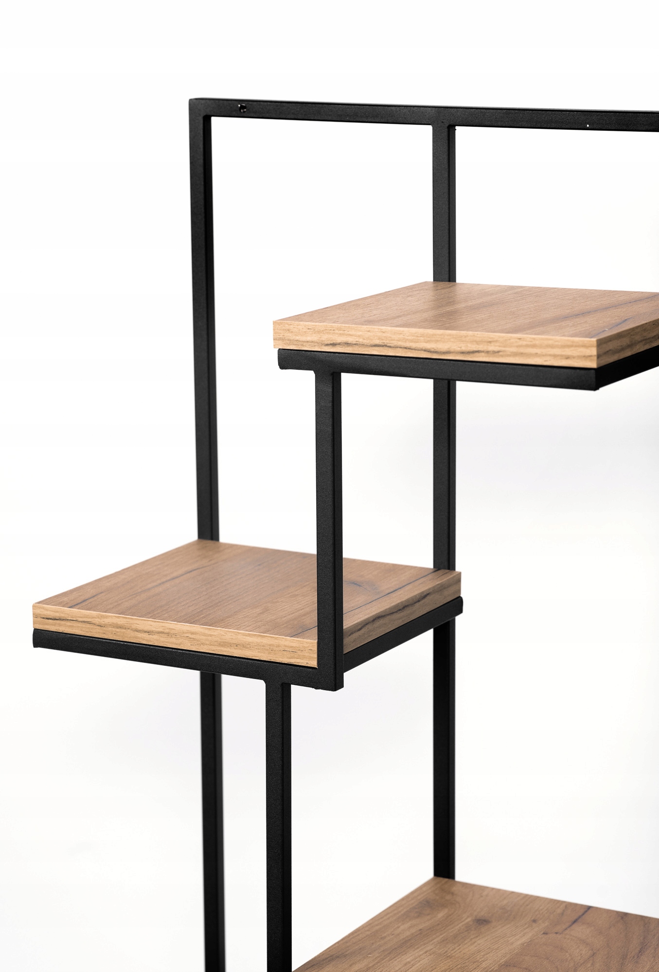 Czarna konstrukcja w połączeniu z blatami nadaje wyjątkowego uroku i elegancji. Kwietnik pozwala zaoszczędzić przestrzeń na podłodze i dodaje oryginalności każdemu pomieszczeniu. Idealny do wyeksponowania Twoich ulubionych roślin w domu lub biurze.