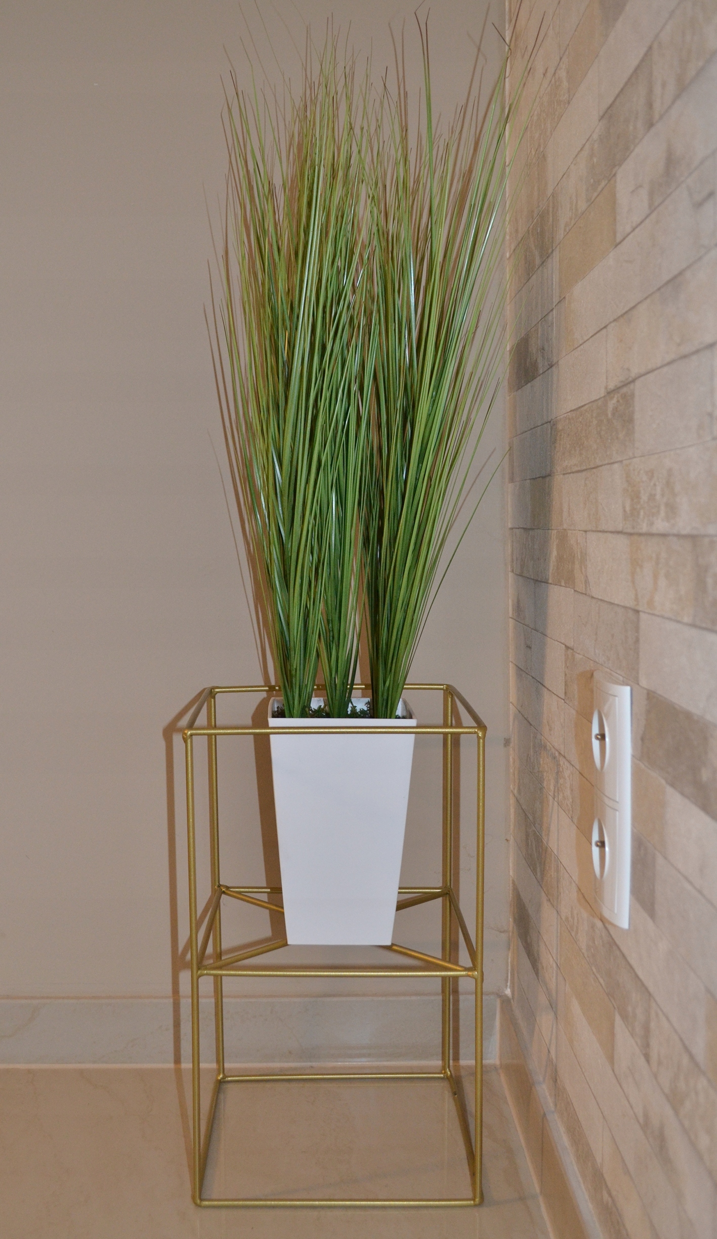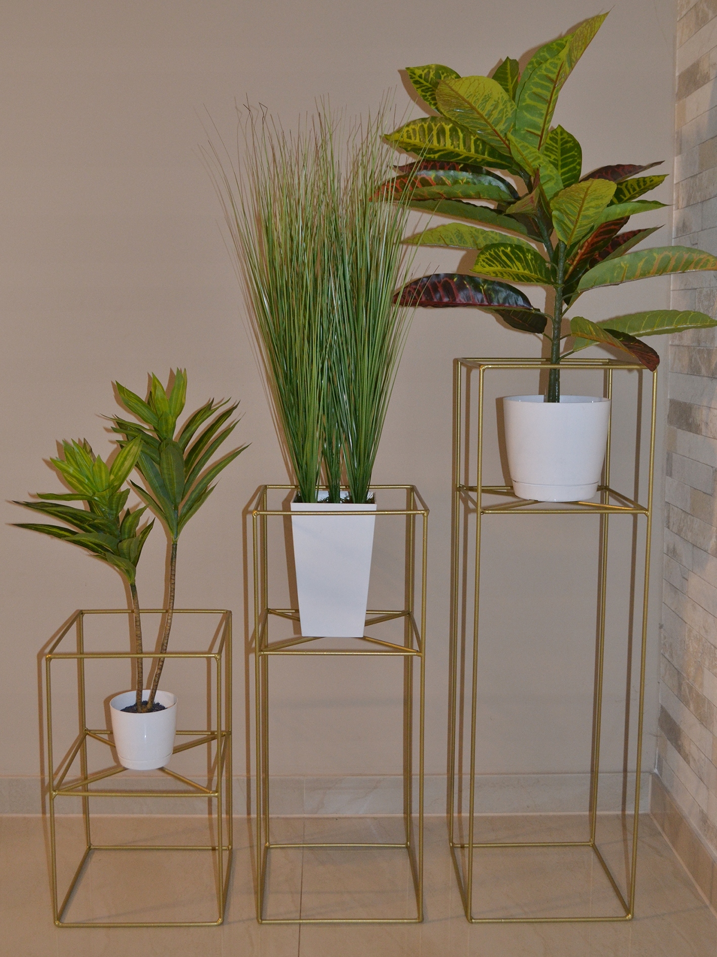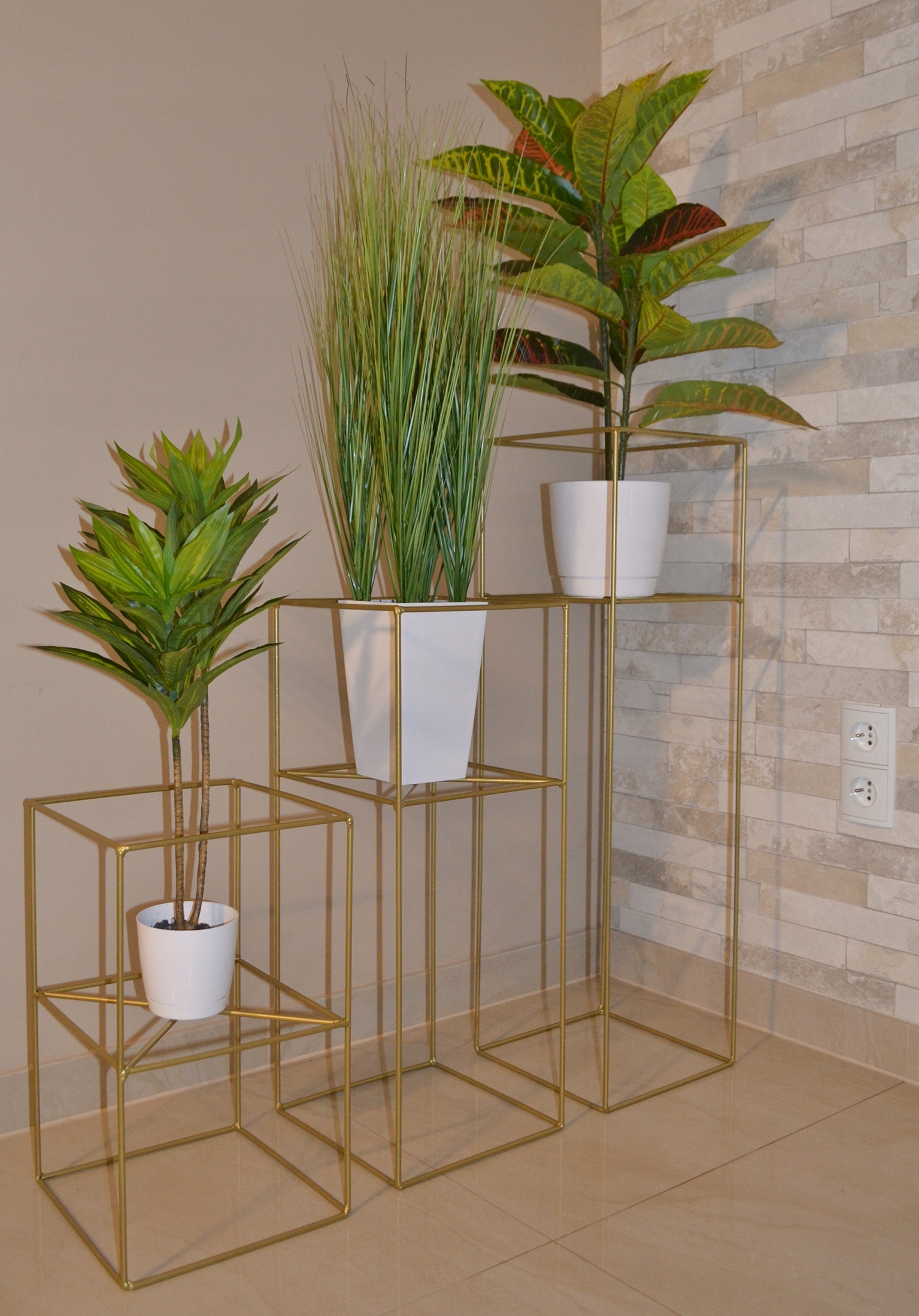 Prezentujemy nowoczesny kwietnik metalowy w kolorze złotym o wysokości 40 cm, utrzymany w modnym industrialnym stylu typu loft. Wyjątkowy stojak na kwiaty, który sprawdzi się jako uzupełnienie przestrzeni mieszkalnej nadając pomieszczeniu unikalnego charakteru. Z jego pomocą wyeksponujesz kwiaty lub zioła. Idealny do domu, ale również na balkon, taras lub do biura. Sprawdzi się dla roślin żywych oraz sztucznych. Wykonany w całości z metalu co pozwala na łatwe utrzymanie w czystości.