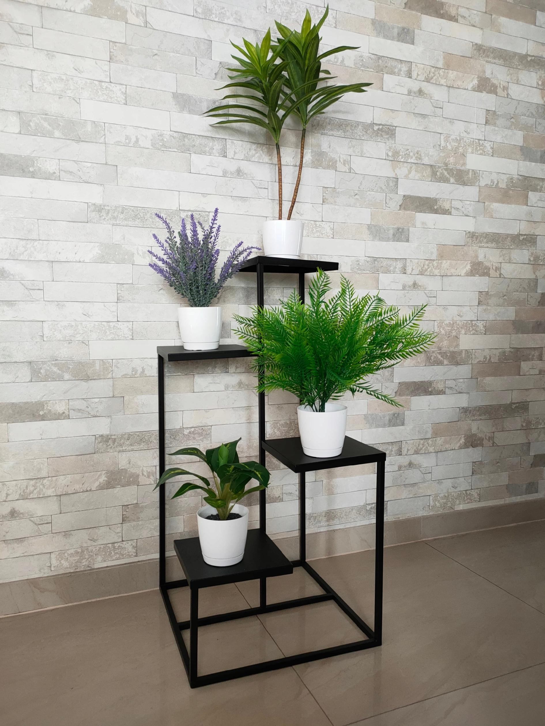 Kwietnik stojak metalowy loft czarny 4 donicowy