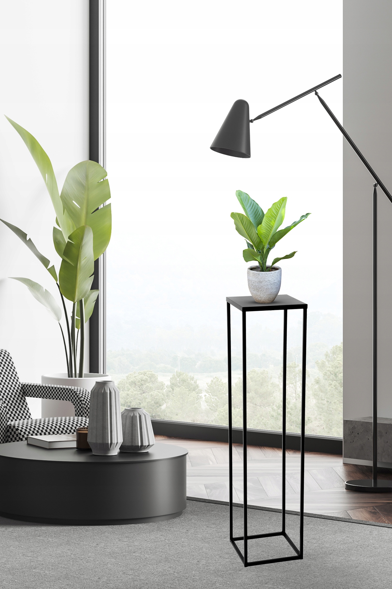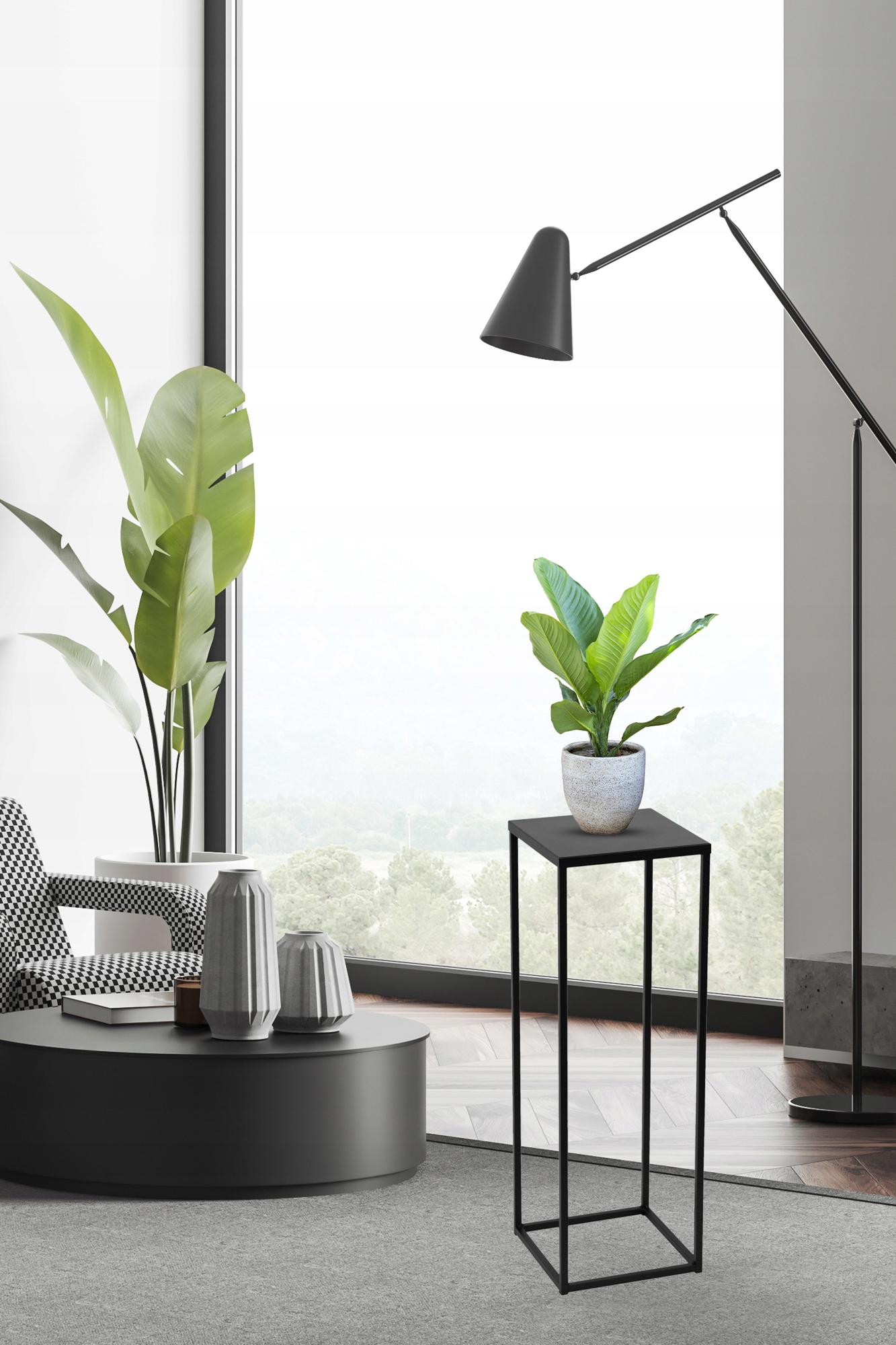 Prezentujemy zestaw nowoczesnych stojaków metalowych w kolorze czarnym o wysokości: 60 i 80 cm
