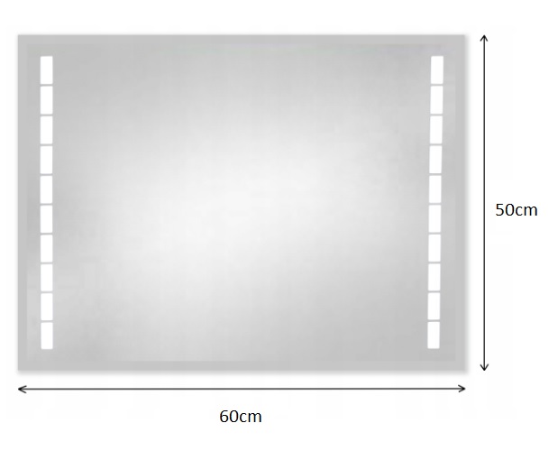 Prezentujemy prostokątne lustro o wymiarach 60x50cm z podświetleniem LED.