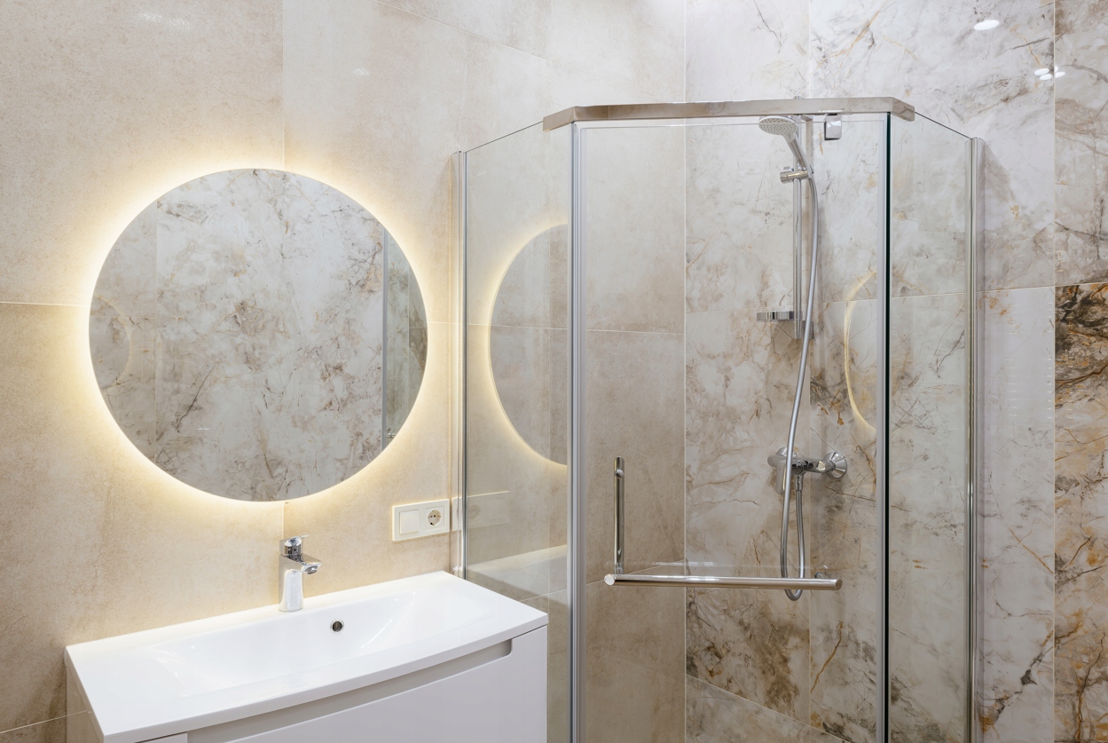 ✅ Zasilanie 230 V – lustro przygotowane do zasilania z włącznika wbudowanego w ścianę