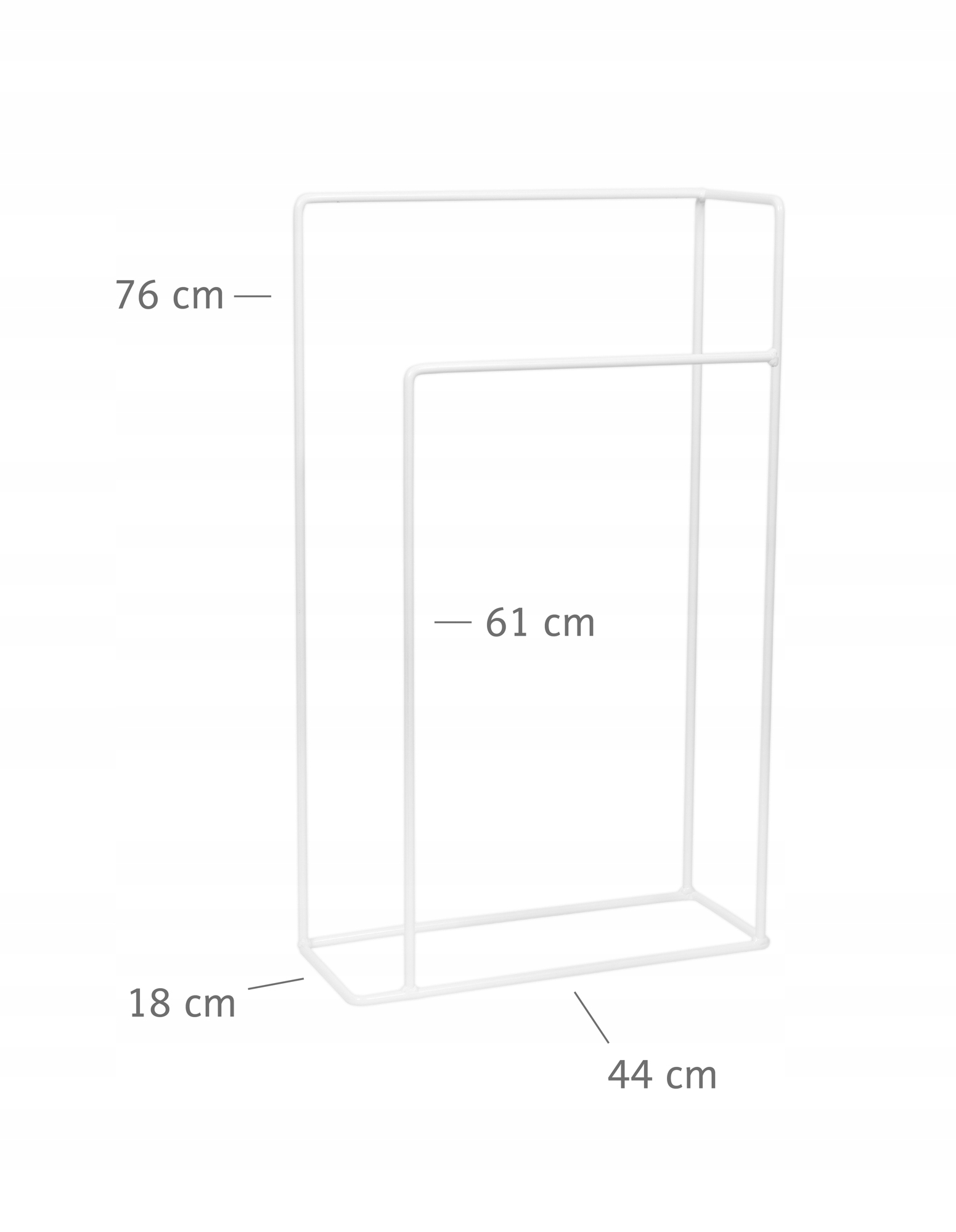 Prezentujemy piękny stojak na ręczniki w białym kolorze. Wykonany jest z drutu o grubości 10mm. Jest malowany proszkowo, co zapewnia ochronę przed wilgocią.
