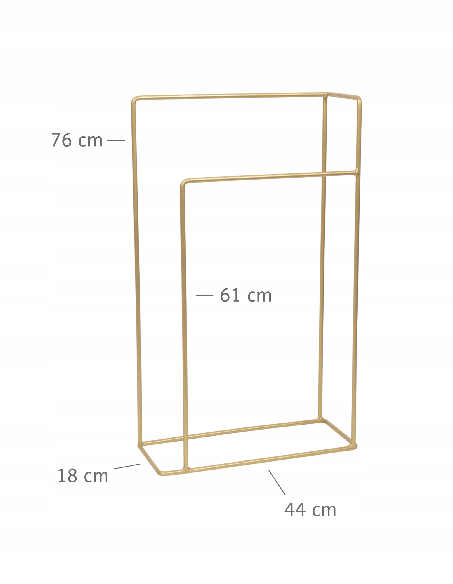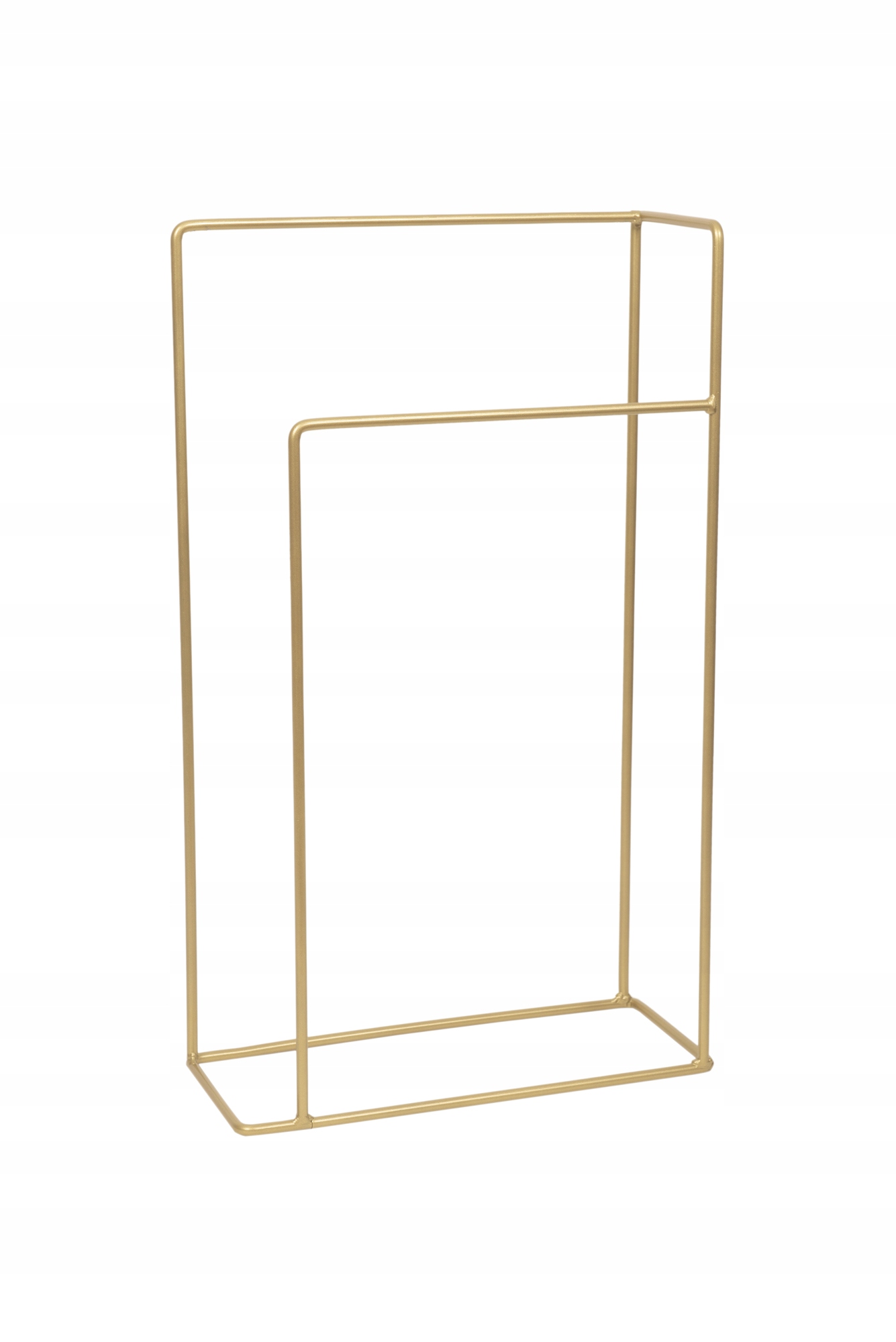 Prezentujemy piękny stojak na ręczniki w złotym kolorze. Wykonany jest z drutu o grubości 10mm. Jest malowany proszkowo, co zapewnia ochronę przed wilgocią.