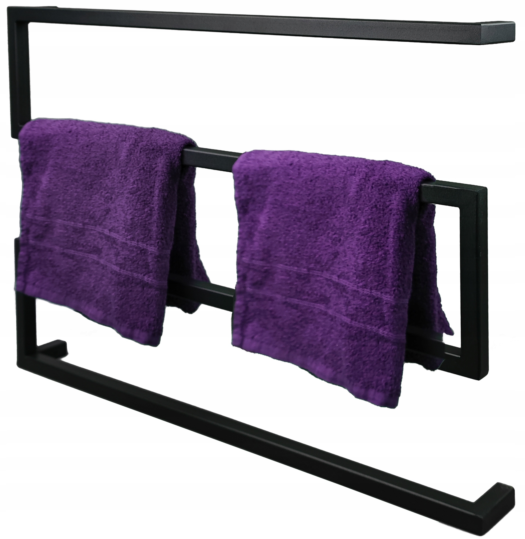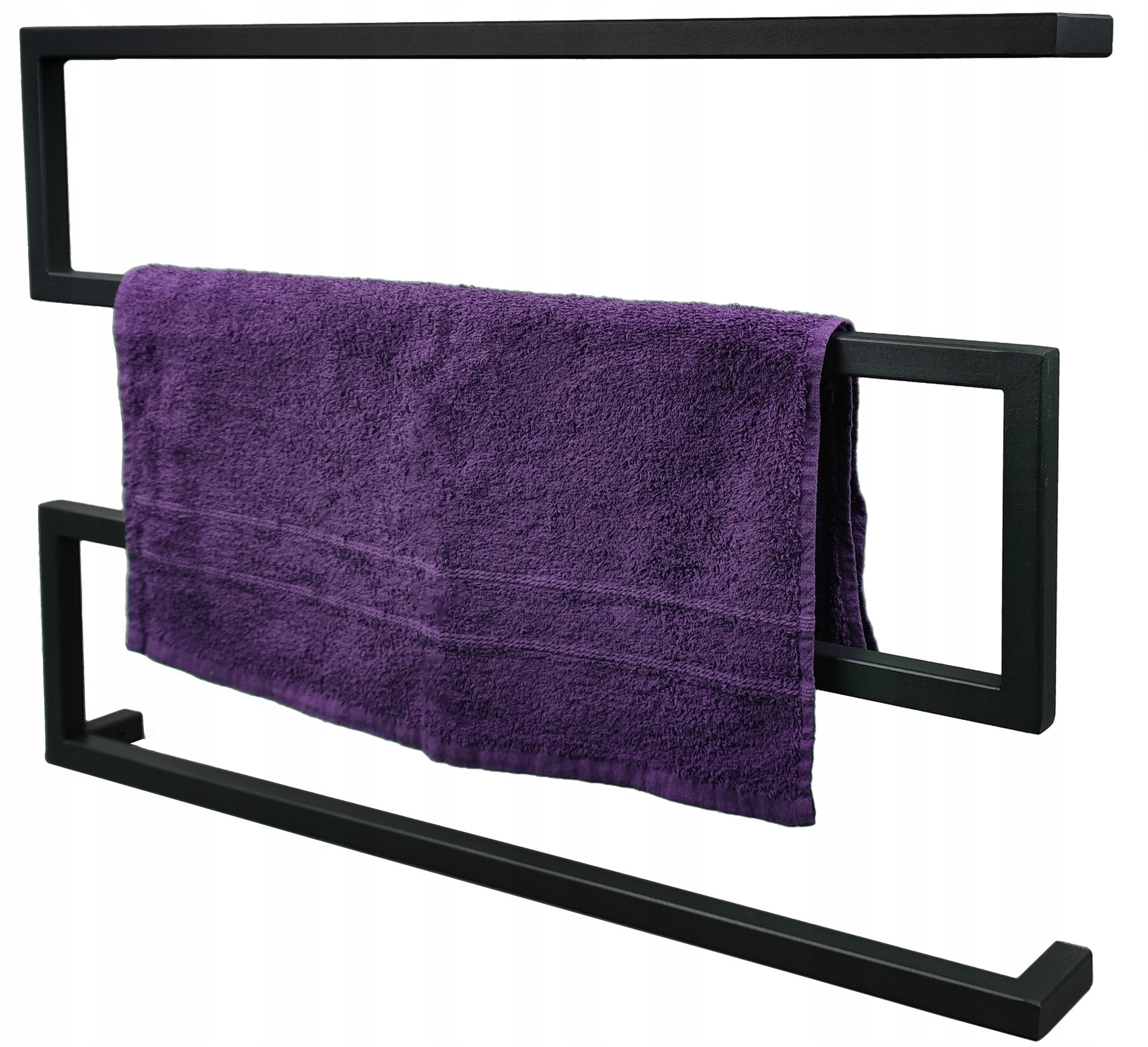 Prezentujemy piękny, metalowy wieszak na ręczniki w czarnym kolorze. Wykonany jest ze stali malowanej proszkowo, dzięki czemu jest odporny na wilgoć.